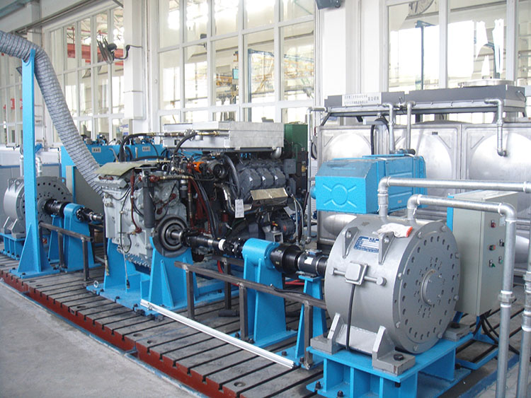 坦克傳動(dòng)箱試驗(yàn)臺(tái):測(cè)試變速箱輸出端轉(zhuǎn)速扭矩功率等參數(shù)。